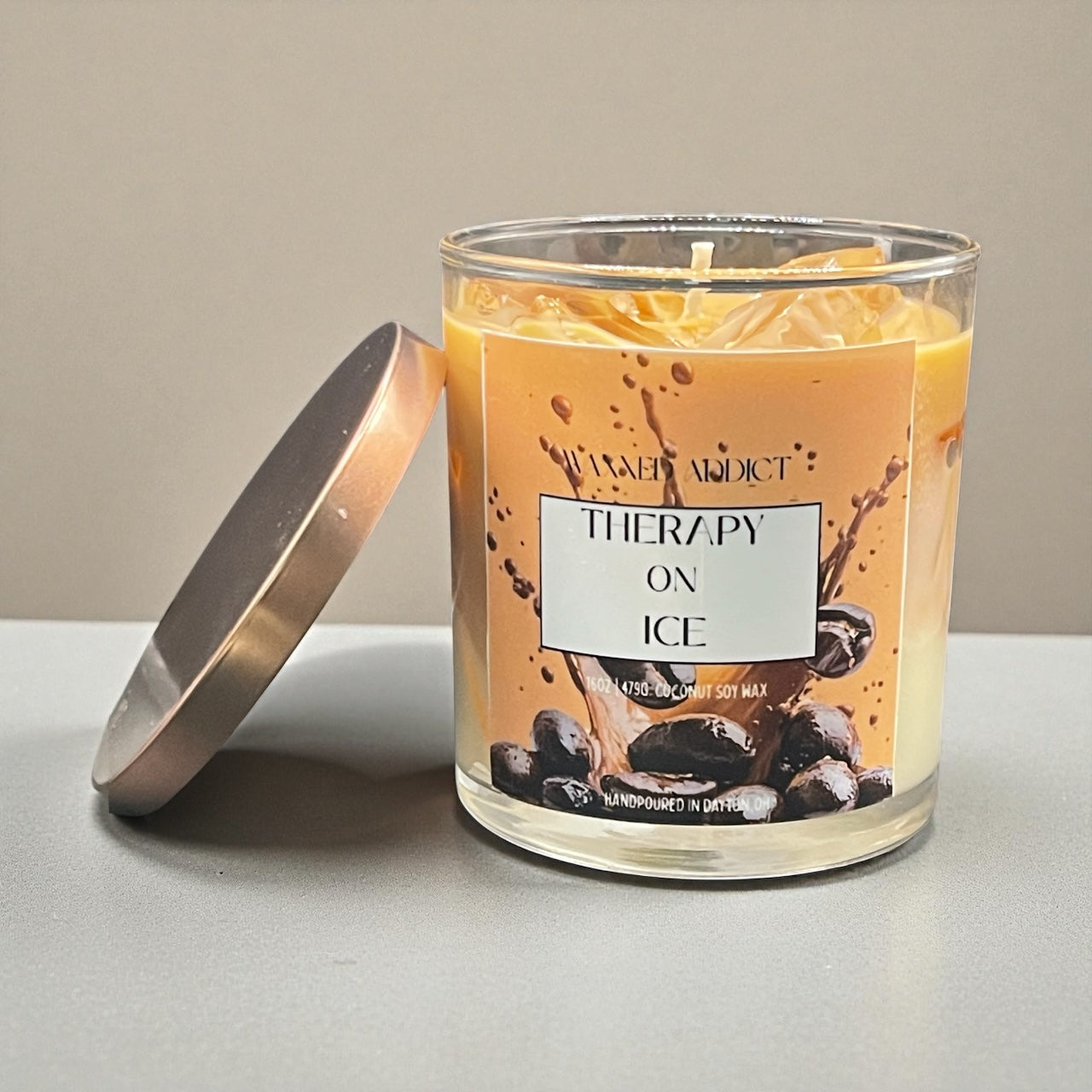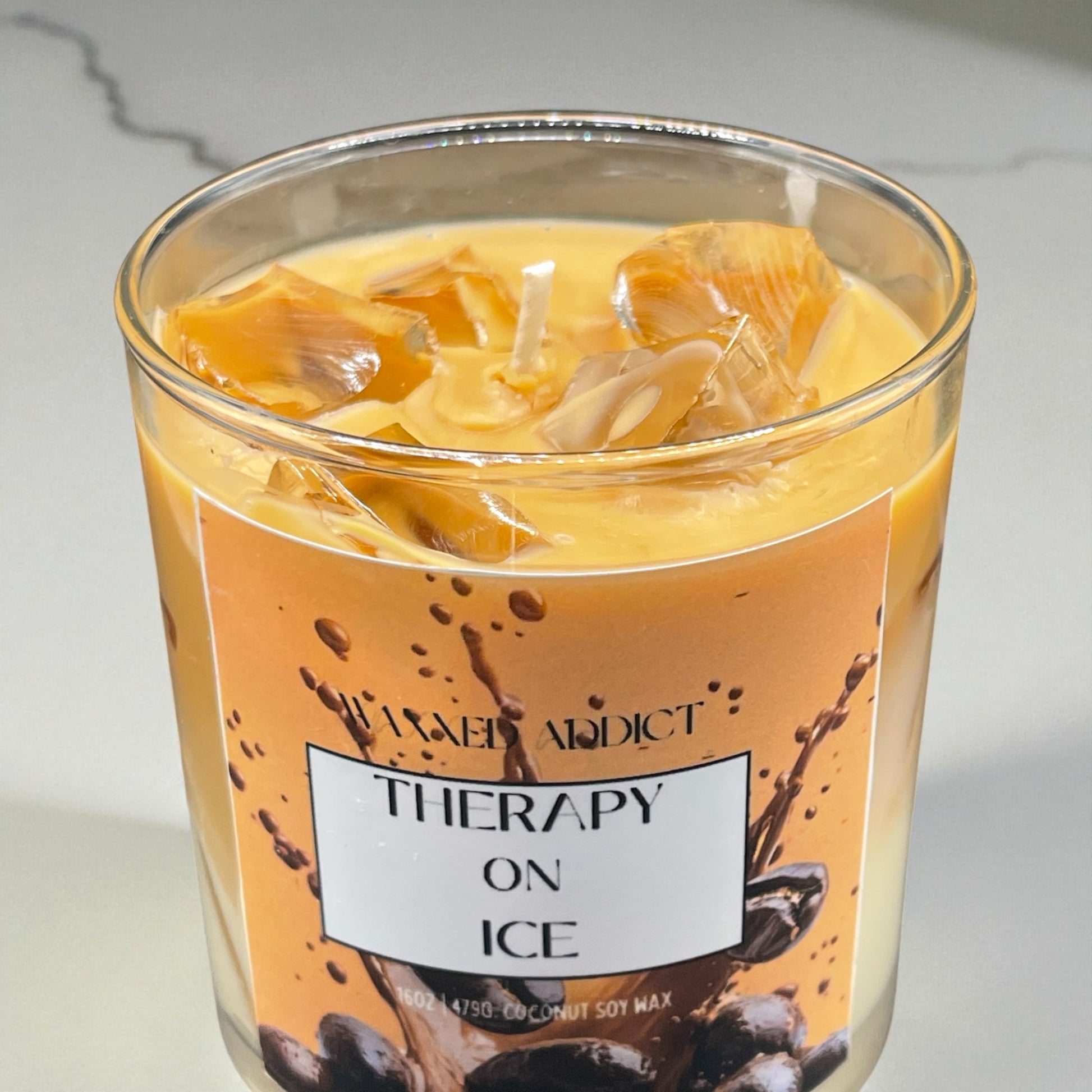 Turn up the charm with the newly crafted, Therapy on Ice, iced latte candle. Enjoy swirls of rich coffee, a sprinkle of cinnamon and velvety creamy vanilla. Hand poured to resemble a frosty cup of iced coffee on ice, this candle teases your senses and sets a playful cozy mood. Light it, inhale, and transport yourself to your favorite coffeehouse- without the line!