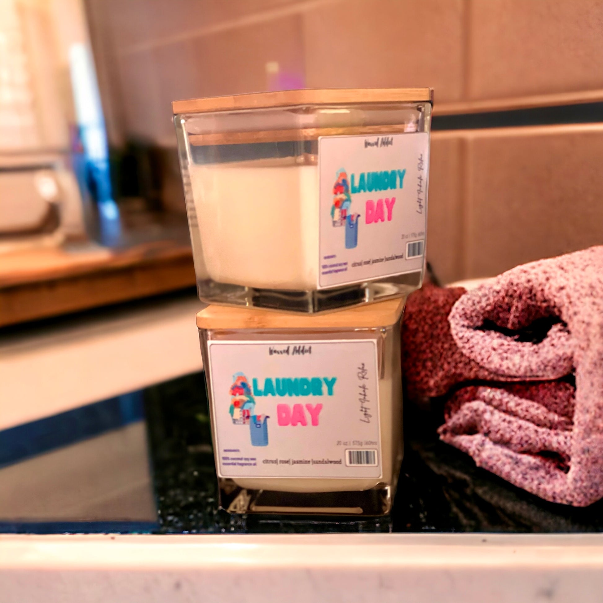 Elevate your laundry experience with Laundry Day - a scent that captures the comforting aroma of fresh laundry. This clean scented candle will captivate your senses. Its new sleek design with wooden lid gives an aesthetically pleasing finish to any room.